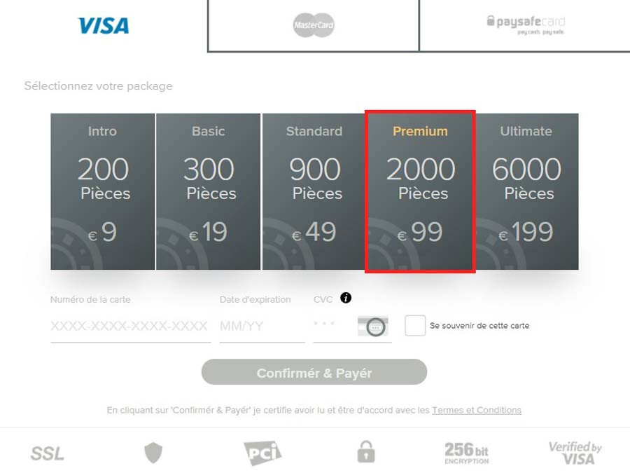Son système de pièces vous permet de payer uniquement en fonction de votre utilisation. En effet, elles vous permettent d’envoyer des messages aux autres membres. Comptez 40 pièces par message. Si cela peut paraître un peu cher, mais il faut dire qu’il s’agit tout de même d’un gros plus pour tous ceux qui pensent utiliser la plateforme de manière sporadique. D’autant que les pièces n’ont pas de durée limitée !